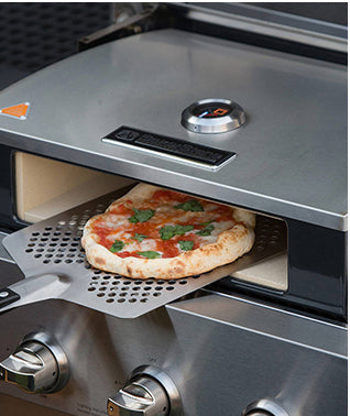 The BakerStone Professional Series Grill Top Pizza Oven Box Kit allows you to transform your grill into a gourmet pizza oven. The pizza oven box's patented design raises the temperature of outdoor grills to that of a real wood burning pizza oven. Unmatched baking performance is achieved by combining convective, conductive and radiant heat to quickly and evenly bake a variety of foods. Patented 5 sided stone baking chamber. Converts most 3-burner and larger gas grills into a gourmet pizza oven.
